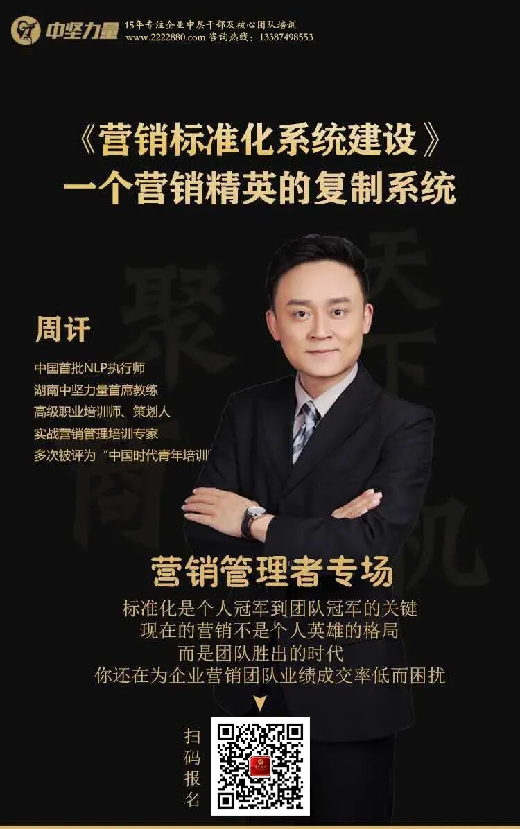 周老师的课程为我们提供了一套实用、细致的销售流程,让销售成为有标准、有流程、有思路、有方法、有工具的全员复制,有助于销售人员在销售中把握主动权,引导客户顺利签单;同时,它对建立效率导向的销售文化和共通的语言平台也很有帮助。